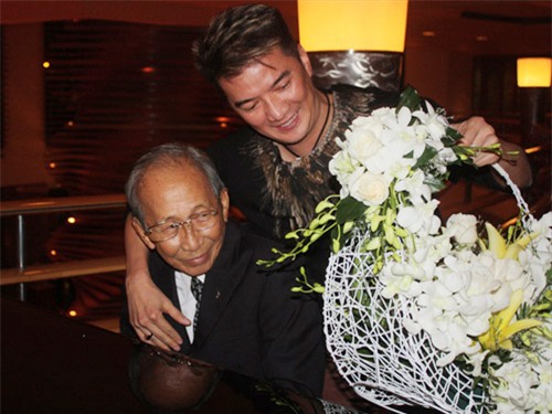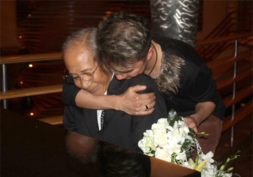 ôm từ phía sau của Đàm Vĩnh Hưng với nhạc sĩ gạo cội Nguyễn Ánh 9 cũng