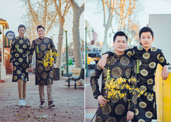 Mới 15 tuổi, Bảo Nam đã cao 1m9. Quang Dũng mong con trai không cao thêm nữa vì lo dáng cậu mất cân đối. Bảo Nam không thích chụp ảnh, kể cả khi đi chơi với bố. Những tấm ảnh bố con Quang Dũng mặc áo dài là lần hiếm hoi con chiều ý anh.