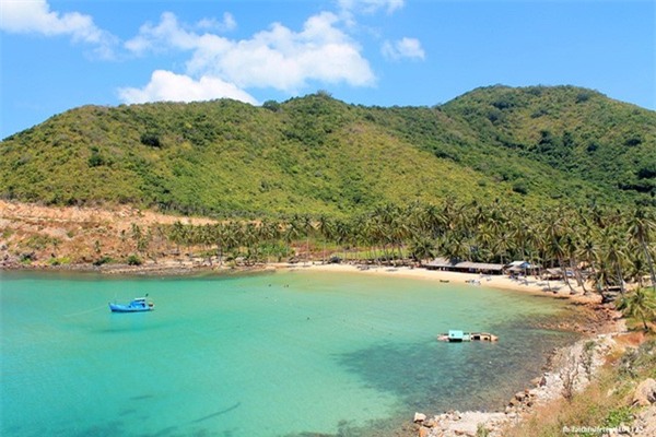 Toàn cảnh bãi Mến - bãi biển đẹp nhất ở hòn Củ Tron, nơi dừng chân lý tưởng của hầu hết du khách.