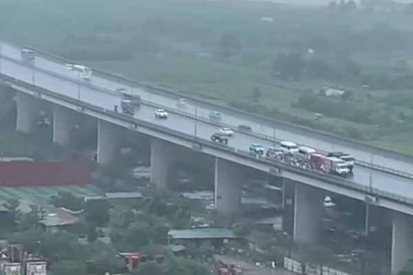 Một đoạn clip tương tự cũng được lan truyền mạnh mẽ trên mạng xã hội tối 7/9, ghi lại cảnh 2 ô tô con cùng che chắn cho một xe máy đi qua cầu vượt ở Hà Nội.