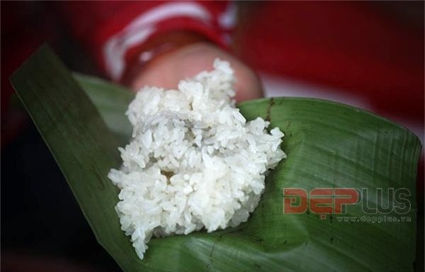 chiếc bánh lá xanh mởn, phủ từng hạt xôi nếp mẩy căng ấy lại hấp dẫn