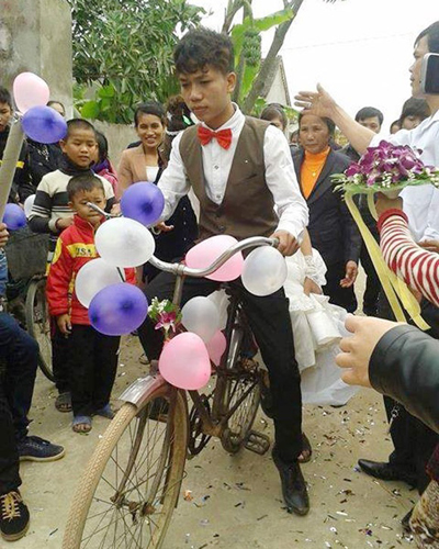 Một đám rước dâu khác cũng độc đáo không kém với xe đạp đua tại Bình Dương