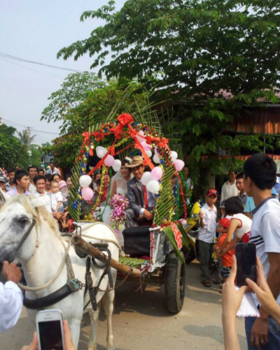 Đám cưới rước dâu bằng xe ngựa Đám cưới độc đáo nà diễn ra tại thôn Vĩnh Cát, xã Thạch Vĩnh, huyện Thạch Hà, tỉnh Hà Tĩnh vào ngày 12/1/2014.
