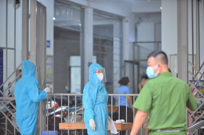 Sau khi CDC Hà Nội thông báo, lực lượng chức năng đã lập hàng rào chắn xung quanh tại tất cả các lối đi lại. Phía bên trong, các nhân viên y tế đang làm các công tác phun khử khuẩn và hướng dẫn người dân phòng chống dịch.