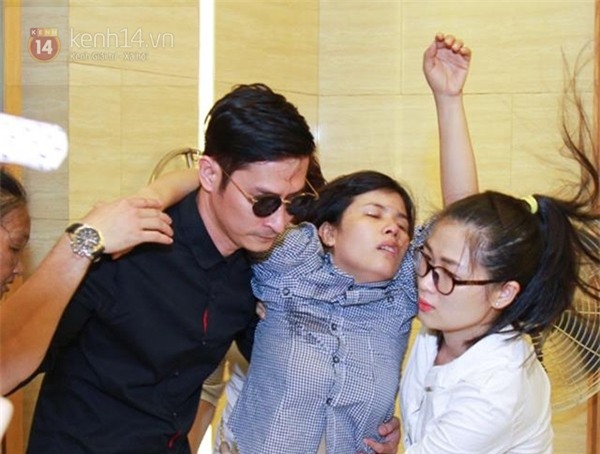 cõng chị của Duy Nhân từ nhà tang lễ ra tận xe sau khi chị bị ngất xỉu
