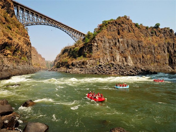 Đi bè trên sông Zambezi, Zambia: Con sông nổi tiếng với những trận lũ từ tháng 2 đến cuối tháng 6. Có những thời điểm, lưu lượng nước trên sông lớn gấp 4 lần sông Colorado, Mỹ. Vì vậy, đi bè trên sông Zambezi không dành cho những người yếu tim.