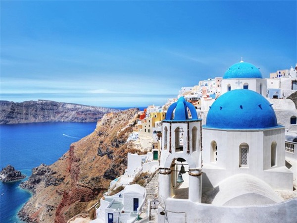 Santorini, Hy Lạp: Nhìn ra biển Aegean, những ngôi làng ở Santorini nổi bật với những ngôi nhà 2 gam màu trắng và xanh dương được xây bên sườn núi.