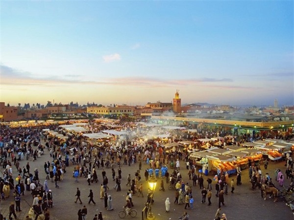 Morocco: Khu chợ nổi tiếng ở Morocco với những quầy hàng nhiều màu sắc cùng phong cách kiến trúc của thành phố từ lâu đã trở thành điểm hút khách du lịch.