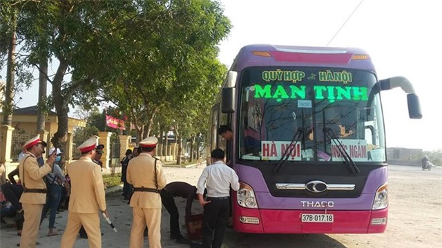 CSGT kiểm tra xe khách 37B - 017.18. Ảnh: Nguyễn Dương.