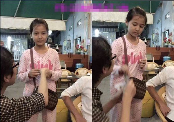 Em bé này khoảng 7 tuổi thường hay đi bán vé số. Dù còn nhỏ tuổi, nhưng cô bé rất ngoan ngoãn, ăn nói có duyên nên nhiều người mua giúp cho bé.
