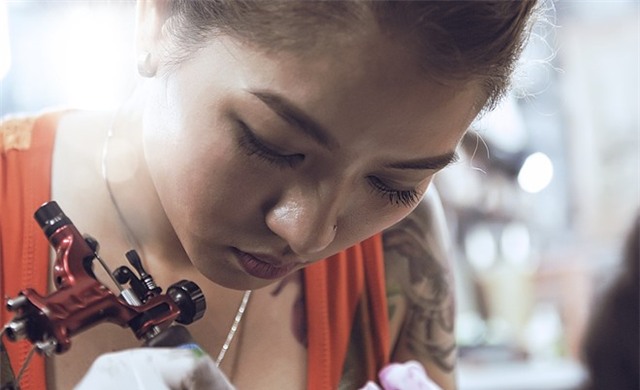 | Năm 2010, cô theo học khóa xăm phun nghệ thuật ở hội Mỹ thuật. Sau đó, cô vào làm việc tại một trung tâm xăm hình lớn ở TP HCM cho đến nay. Ảnh: Trần Lân. |