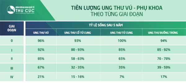 | Tiên lượng ung thư vú - phụ khoa theo từng giai đoạn (Nguồn Cancer.org) |