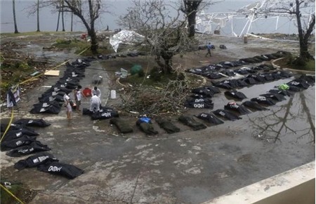 Thi thể những người thiệt mạng do bão Haiyan nằm la liệt trên mặt đất. Ảnh: Reuters. |