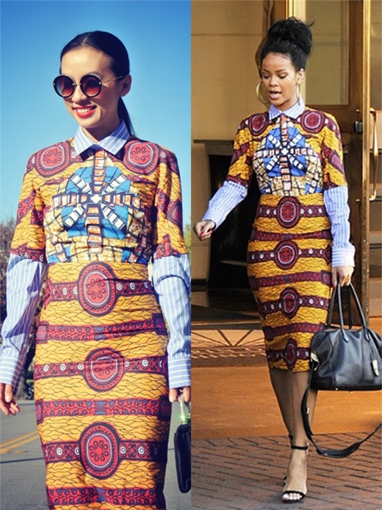 MC Huyền Ny xinh tươi và rạng rỡ trong cùng thiết kế giống nữ ca sĩ Rihanna.Váy nằm trong bộ sưu tập thu đông 2014 của Stella Jean