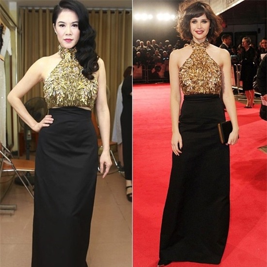 Nữ ca sĩ Thu Phương "mặc chung" váy với người đẹp Anh người Felicity Jones.Đây là thiết kế của Alexander McQueen và có giá khoảng 250 triệu đồng.