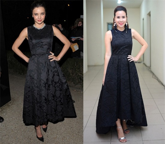 Trong khi siêu mẫu Úc Miranda Kerr thu hút mọi ánh nhìn với chiếc váy đen dángmullet của H&M, thì Lưu Hương Giang cũng duyên dáng không kém với cùngtrang phục.