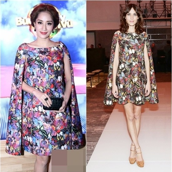 Khánh Thi và Alexa Chung cùng khoe dáng với váy họa tiết bướm hiệu Valentino, giá gần 90 triệu đồng.