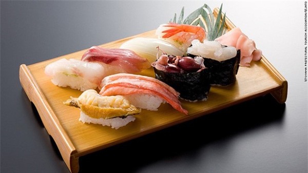 Sushi: Là món ăn trứ danh của Nhật Bản, một miếng sushi ngon dựa trên hai yếu tố chính: độ tươi của nguyên liệu và kỹ thuật của đầu bếp. Đến xứ hoa anh đào, bạn sẽ có cơ hội thưởng thức đủ loại sushi với những mức giá khác nhau. Ảnh: CNN.