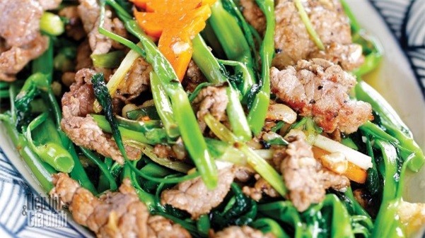 Dọc đường đi, các nhà hàng phục vụ rất nhiều món ăn chế biến từ thịt trâu, từ các món từ thịt tươi ăn kèm cơm cho đến các món thịt trâu khô để lai rai làm đồ nhắm. Ngon nhất phải kể đến là thịt trâu nhúng mẻ và trâu xào rau muống.