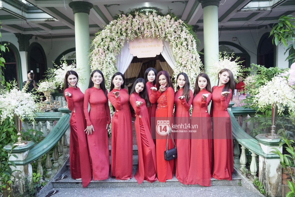 Trong khi đó, dàn dâu phụ xinh đẹp trong lễ rước dâu của Lâm Khánh Chi là các người đẹp chuyển giới.