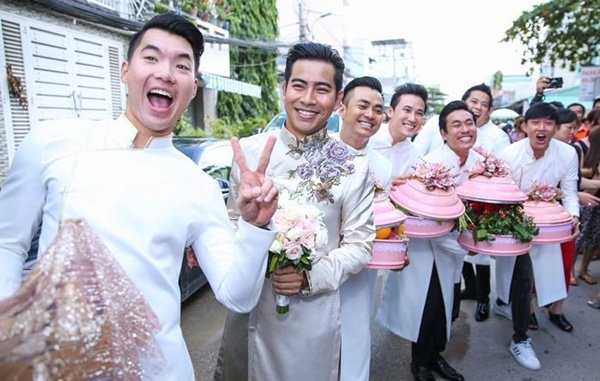 Dàn phù rể toàn soái ca trong đám hỏi của Ngọc Lan và Thanh Bình.