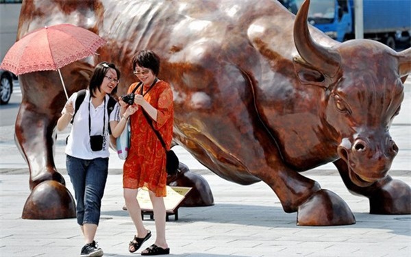 điêu khắc của Arturo Di Modica để cầu may. Du khách có thể tham quan bản