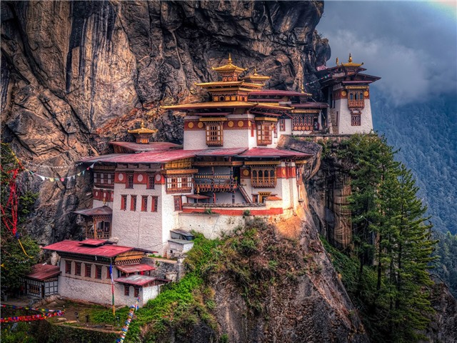 Tu viện Taktshang hay còn được gọi là “nơi ẩn náu của hổ”, nằm trên một vách đá dốc khoảng 900 mét so với thung lũng Paro ở Bhutan. Các sườn núi đá ở đây rất dốc, gần như thẳng đứng, vì thế các tòa nhà tu viện đều được bố trí xây dựng trên mặt đá.