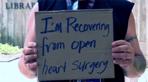 Người đàn ông này vừa phải trải qua cuộc phẫu thuật tim hở và đang trong quá trình hồi phục.