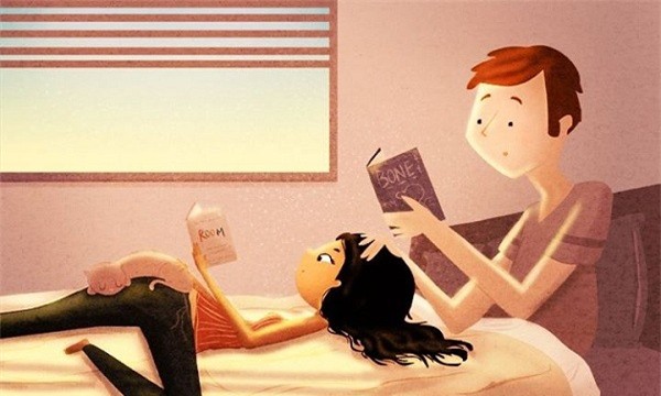 cùng nhau đọc sách, mỗi người đọc một quyển sách khác nhau nhưng hai