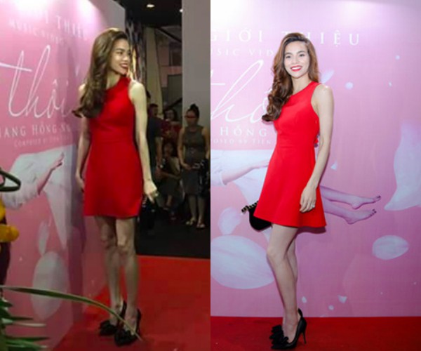 Hà Hồ phải ngan thiệp chút công nghệ chỉnh sửa để cải thiện đôi chân dài nhưng khá ốm của mình.
