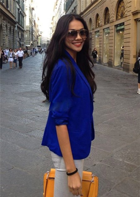 Áo khoác blazer là trang phục không thể thiếu của cô, vừa năng động vừa thoải mái. |