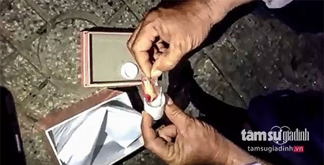 Chị Hoa rất hoảng sợ khi nhận được món quà đẫm máu là ngón tay của chồng mình |