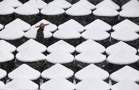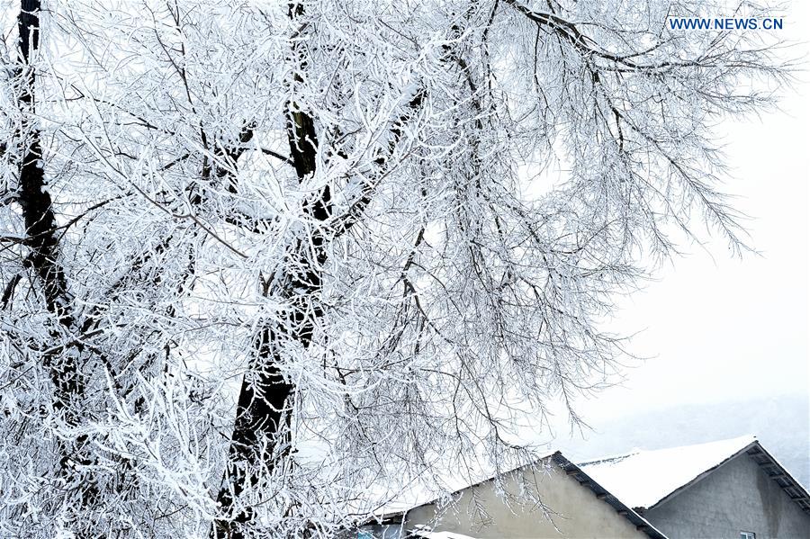 Hình ảnh cây phủ đầy tuyết được chụp tại thành phố Tỷ Quy, tỉnh Hồ Bắc, Trung Quốc