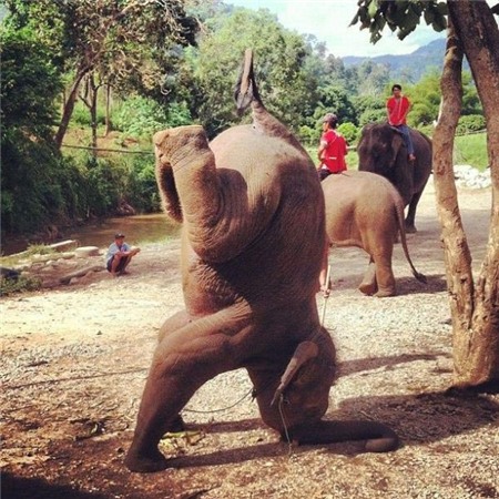 Voi trồng cây chuối, cảnh không phải ai muốn cũng được nhìn thấy.