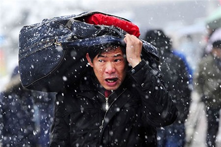 Một người đàn ông mang theo hành lý về quê đón Tết tại một nhà ga ở tỉnh Hồ Nam. (Ảnh: CFP) |