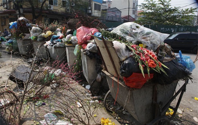 Sau Tết, những bãi rác nghi ngút được chất đầy các tuyến đường ở thành phố. Lẽ dĩ nhiên là phần việc dọn dẹp, tân trang lại phố phường sẽ đến tay các cô chú lao công. (Nguồn: Dân việt).