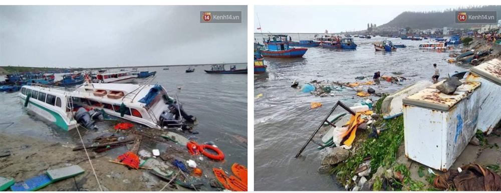 Tại bến cảng, dù các tàu thuyền đã được neo đậu cẩn thận nhưng vẫn không tránh khỏi sức tàn phá khủng khiếp của bão số 9, một số tàu đã bị chìm, người dân phải xuống tàu để bảo vệ tài sản của mình.