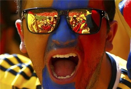Hình ảnh khán đài SVĐ cùng các CĐV qua mắt kính của một fan tuyển Colombia.