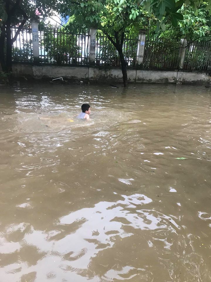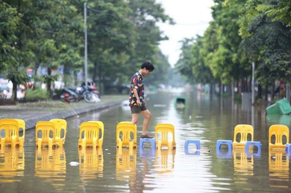 Cảnh tượng này chắc chắn là 1 "đặc sản mùa lụt" không thể thiếu ở Hà Nội.