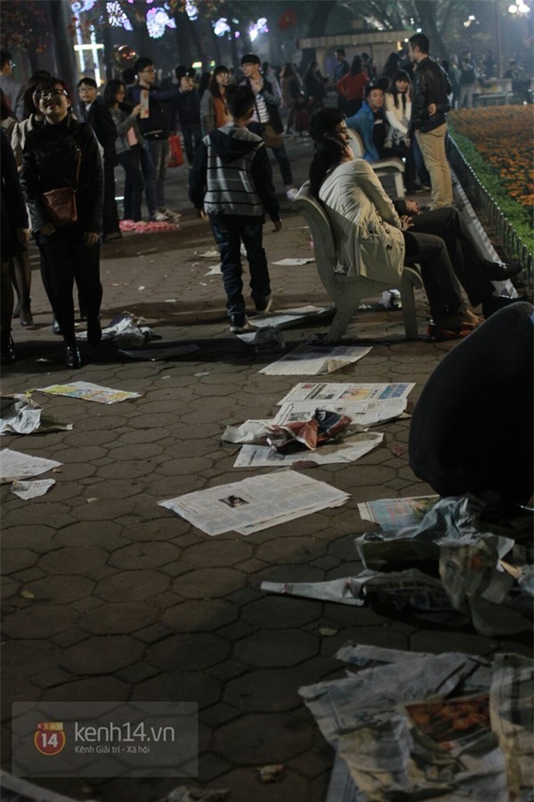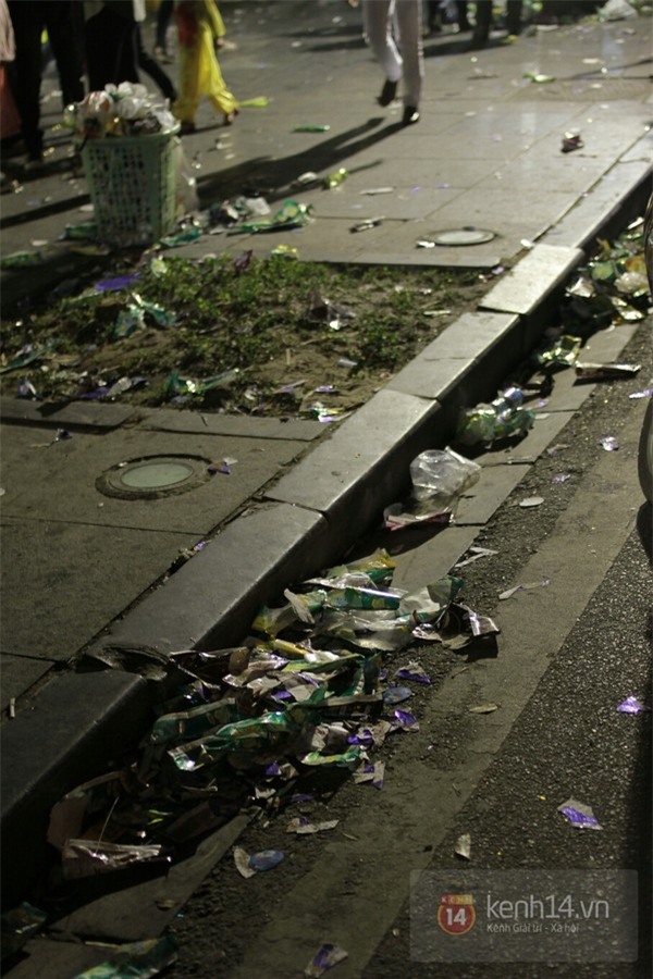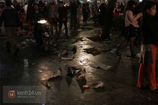 Sau màn bắn pháo hoa chào năm mới 2015, rác thải ngập tràn khu vực Hồ Gươm - (Ảnh: Doãn Tuấn).