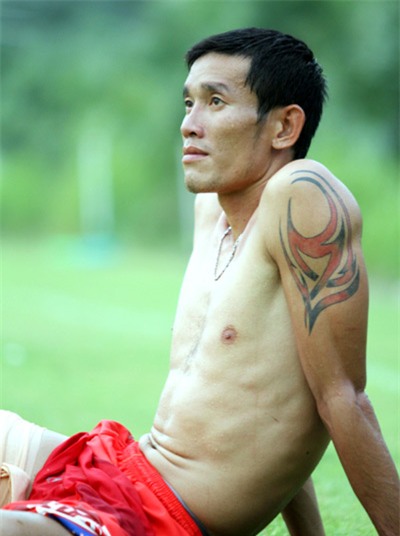 Cựu cầu thủ Hà Nội T&T, Đại Đồng bắt chước thần tượng Beckham khi phủ kín hai cánh tay bằng những hình xăm ấn tượng.
