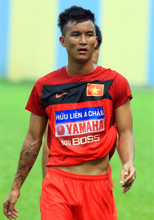 Cầu thủ Hà Nôi T&T, Quốc Long đã phủ kín cánh tay bằng những hình xăm từ lâu.