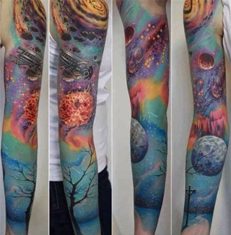 Thay vì những hình xăm nhỏ nhắn tại vị trí khó thấy, giới trẻ ngày nay lại thích ghi dấu kín cả cánh tay thật bắt mắt, ấn tượng.