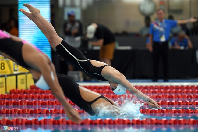 Bước vào Sea Games 29, bên cạnh Schooling ở nội dung dành cho nam, Nguyễn Thị Ánh Viên vẫn là cái tên được nhắc tới nhiều nhất trong các nội dung thi đấu trên đường đua xanh. Tuy nhiên Ánh Viên lại xuất phát "chậm" khi ngay ở nội dung đầu tiên 200 m bướm đã thất bại trước kình địch Quah Jing Wen người Singapore. |