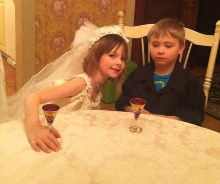 Có ai thấy thương cậu bé này không, khi mà trong "đám cưới" thì "chú rể" phải tươi cười hớn hở thì lại đeo bộ mặt như đưa đám bên cạnh "cô dâu" đang cười khanh khách kia chứ.
