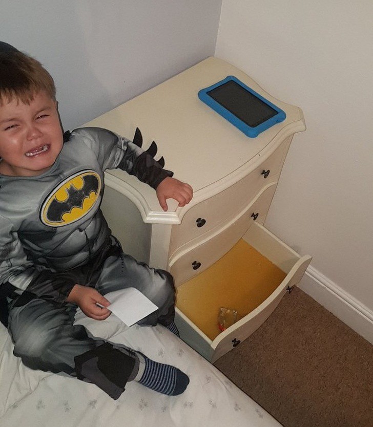 Anh trai khóc thét vì cậu em 3 tuổi trót tè vào ngăn kéo lại còn đổ thừa cho con chó cưng nữa.