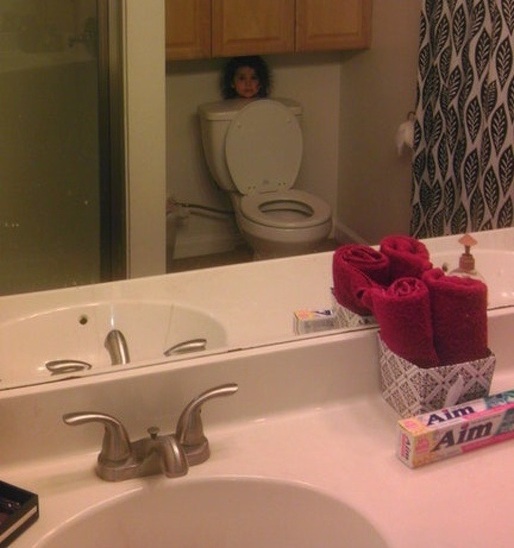 Thiên hạ đệ nhất trốn tìm là đây. May ra nếu mẹ nhìn vào gương thì mới thấy được con đang trốn chỗ nào
