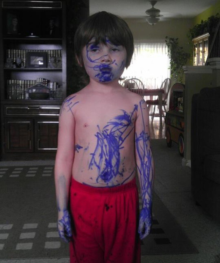 Đây có thể coi là tác phẩm hội họa kinh điển nhất mọi thời đại không ạ? Nhưng vấn đề bố mẹ đang đau đầu nhất là làm sao để những nét vẽ trên người con biến mất không dấu vết đây.