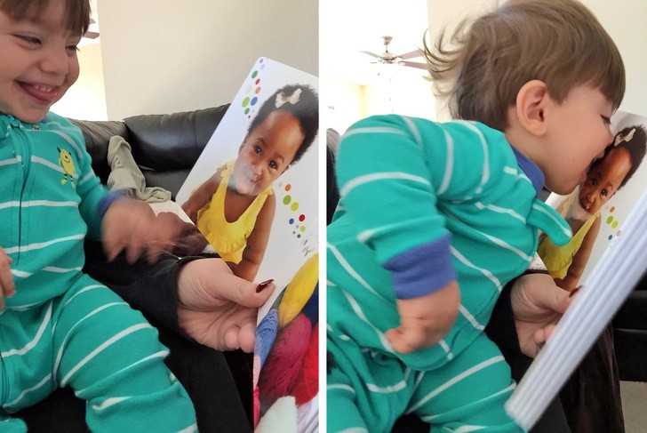 Nhìn bộ mặt hớn hở và thích thú của cậu bé này ai mà không vui lây chứ, lại còn thơm bạn đáng yêu thế kia cơ mà.