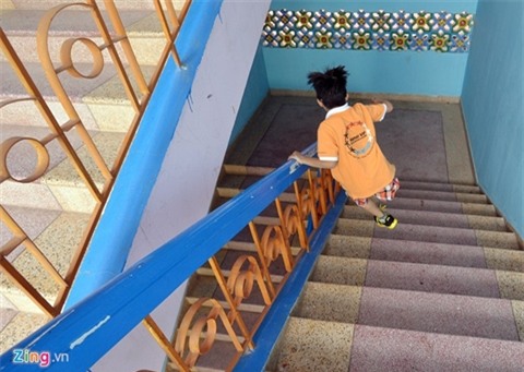 Thiện Nhân nhảy 3 bậc cầu thang một, khiến cô giáo theo không kịp |